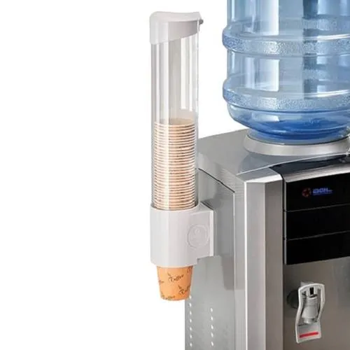 Держатель на 50 стаканчиков - незаменимый атрибут при покупке любой модели кулера для воды. Распределительный зажим, который расположен снизу футляра, отделяет стаканы один от другого, выдавая их по одному. К напольным и настольным моделям кулеров стаканодержатель прочно крепится на болтах к корпусу аппарата. Цвет белый.