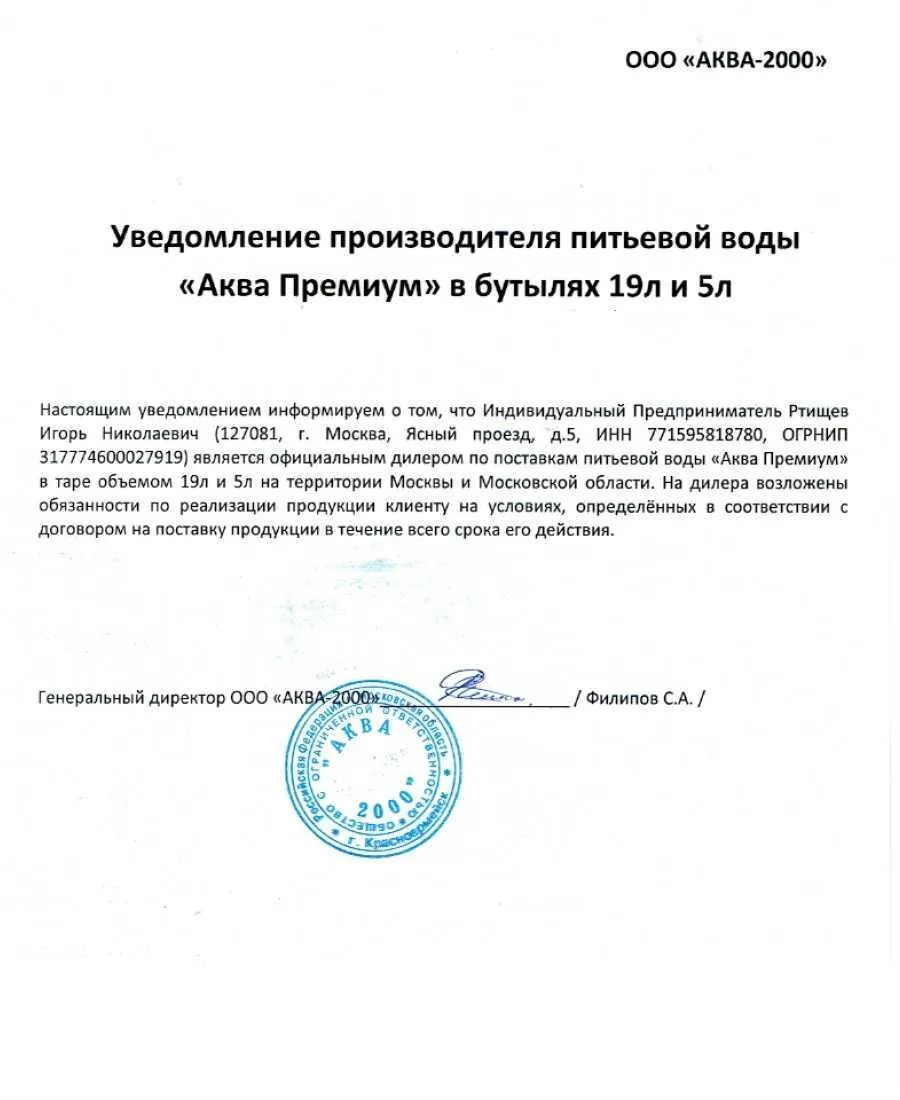Декларация соответствия воды Аква Премиум 354 кб